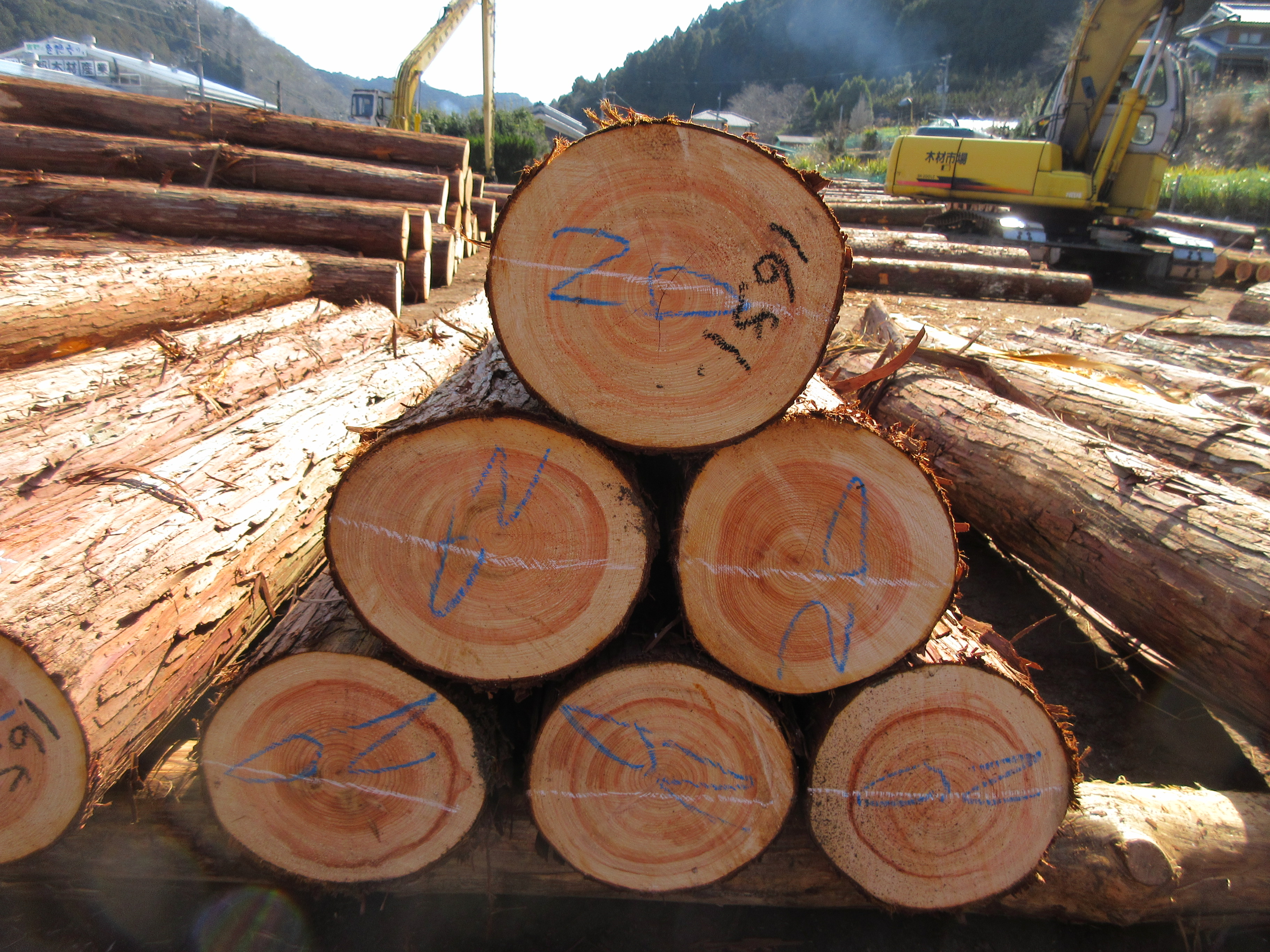 奈良県吉野町で銘木 吉野杉・吉野桧・各種原木丸太を売買する 国産材原木市場です。